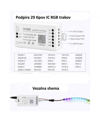 PodPodpira vse IC RGB digitalne LED trakove (WS2811,WS2812B, WS2801, SK6812, SK6812-RGBW, WS2813,SK9822,APA102,WS2818, LPD6803, LPD8806, TM1913, UCS1903, SM16703, DMX512)